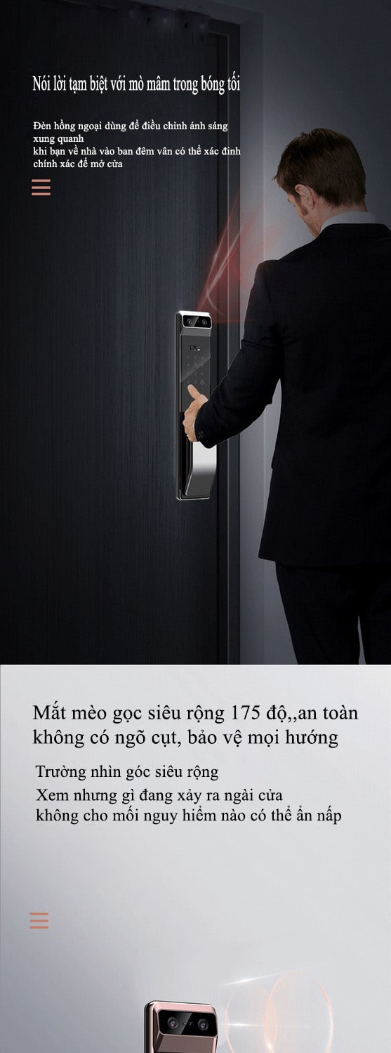 Cùng với đó khóa được tích hợp bộ phận nhận diện thông minh, nhạy bén giúp nhanh chóng xác nhận thông tin người quét. Độ bảo mật cao, rất an toàn khi dùng.